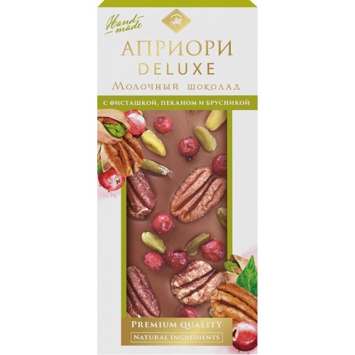 Шоколад молочный АПРИОРИ с фисташкой, пеканом, и брусникой, 100г в магазинах Лента