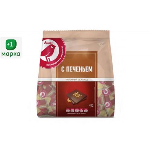 Шоколад молочный АШАН Красная птица с печеньем, 400 г (kastd) в магазинах Ашан