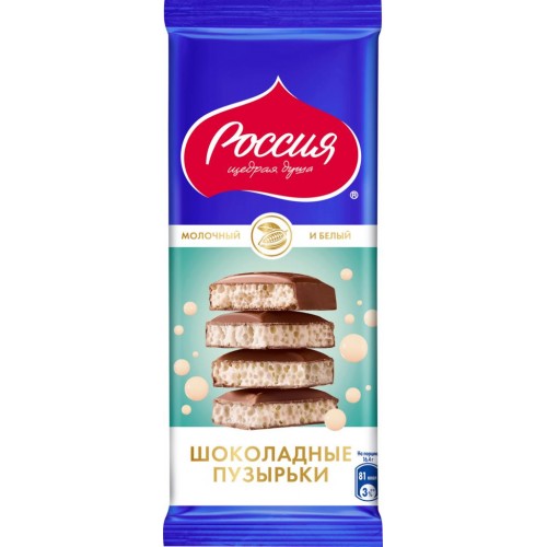 Шоколад молочный и белый РОССИЯ ЩЕДРАЯ ДУША пористый, 75г в магазинах Лента