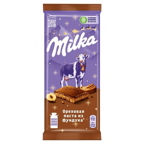 Шоколад Milka молочный c ореховой пастой из фундука, 90 г (kastd) в магазинах Ашан