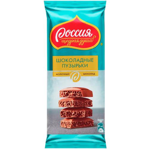 Шоколад молочный Россия-Щедрая Душа Шоколадные пузырьки пористый, 75г в магазинах Перекресток