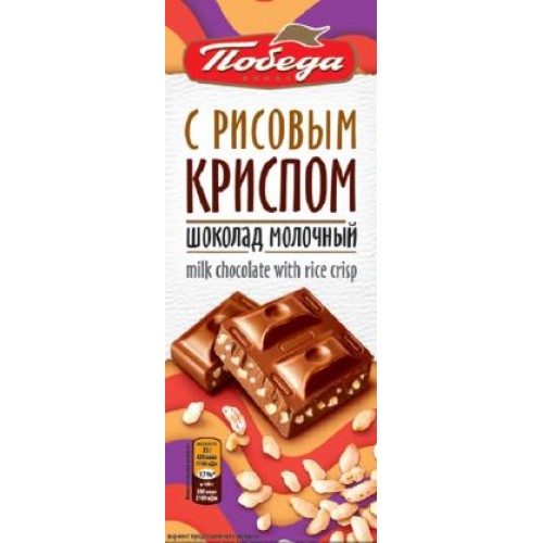 Шоколад Победа молочный с рисовым криспом 85г в магазинах Магнит