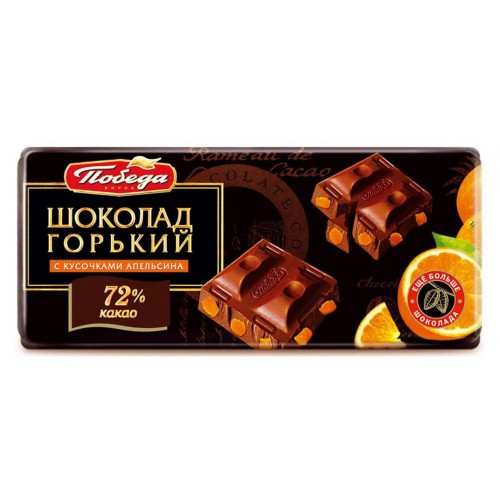 Шоколад Победа Вкуса горький с кусочками апельсина 72%, 100 г (kastd) в магазинах Ашан