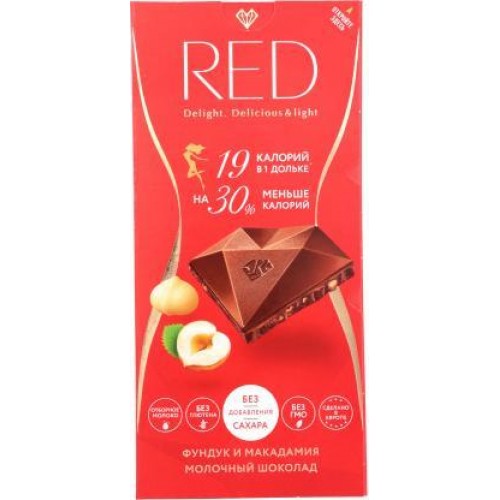 Шоколад Red Delight Молочный с фундуком и макадамией без глютена 85г в магазинах Магнит