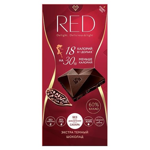 Шоколад RED Темный Экстра 60% без сахара меньше калорий, 85 г (kastd) в магазинах Ашан