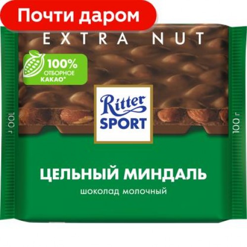 Шоколад Ritter Sport Молочный Цельный миндаль 100г в магазинах Магнит