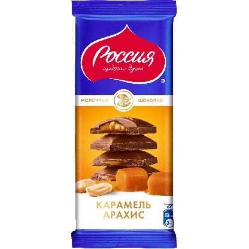 Шоколад Россия - щедрая душа Молочный Карамель Арахис 82г в магазинах Магнит