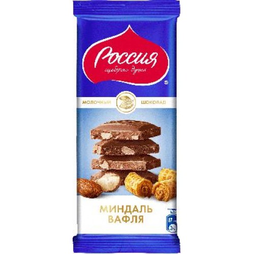 Шоколад Россия - щедрая душа Молочный Миндаль Вафля 82г в магазинах Магнит