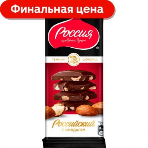 Шоколад Россия - щедрая душа Российский темный с миндалем 82г в магазинах Магнит