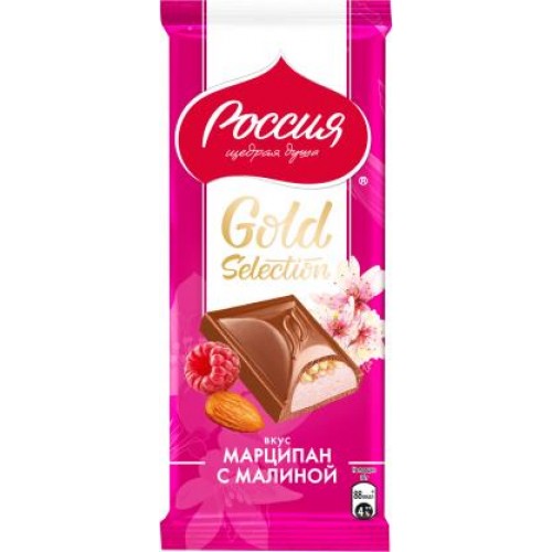 Шоколад Россия Gold Selection молочный миндаль марципан малина 80г в магазинах Магнит