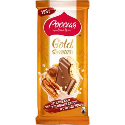 Шоколад Россия щедрая душа Gold Selection молочный вкус орех пекан и кленовый сироп 198г в магазинах Магнит