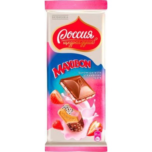 Насладитесь восхитительным вкусом шоколада Россия Щедрая душа Maxibon с клубникой и печеньем, и позвольте себе окунуться в мир нежности и сладости!