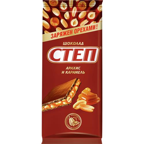 Шоколад СТЕП молочный, с начинкой арахис и карамель, 90г в магазинах Авоська