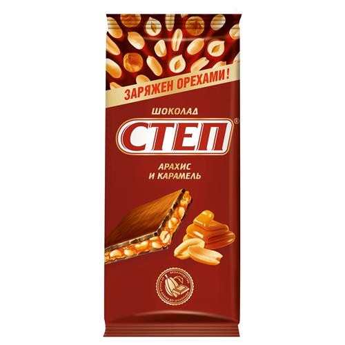 Шоколад СТЕП Молочный с арахисом и карамелью, 90 г (kastd) в магазинах Ашан