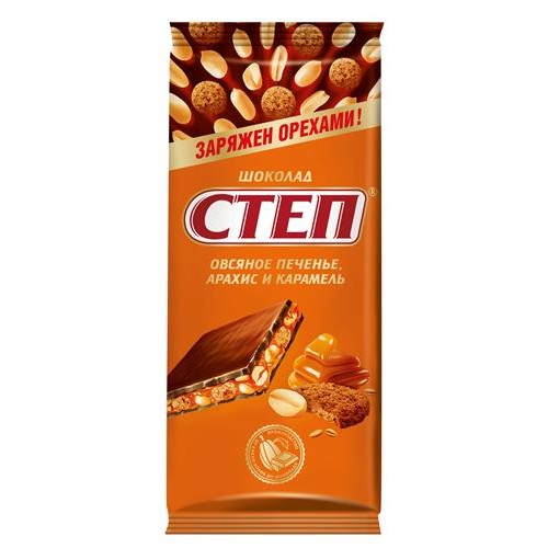 Шоколад СТЕП Молочный с овсяным печеньем арахисом и карамелью, 90 г (kastd) в магазинах Ашан