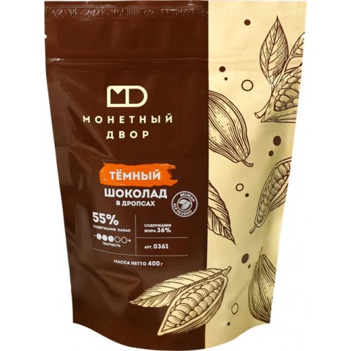 Название товара: Шоколад темный МОНЕТНЫЙ ДВОР дропсы, 55% какао