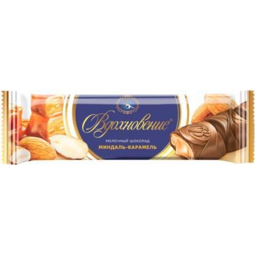 Шоколад Вдохновение с начинкой карамель миндальный шоколад в глазури 41г в магазинах Магнит
