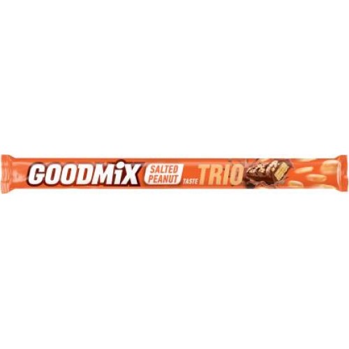 Шоколадный батончик Goodmix Trio соленый арахис хрустящая вафля 69г в магазинах Магнит