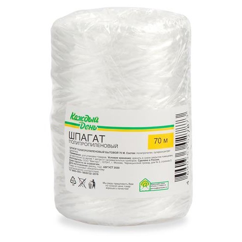 Шпагат полипропиленовый Каждый день белый, 70 м (kastd) в магазинах Ашан