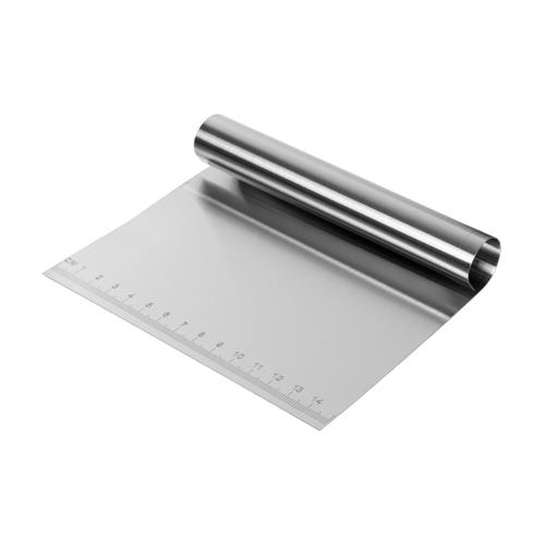 Особенностью данного кондитерского скребка является наличие удобной разметки, которая позволяет точно контролировать количество наносимого материала. Изготовлен из высококачественной нержавеющей стали, он не подвержен коррозии и не впитывает запахи, что обеспечивает гигиеничность использования.