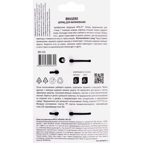 Шприц для маринования APOLLO Brasero, пластик, нержавеющая сталь, Арт. BRS-024 в магазинах Лента