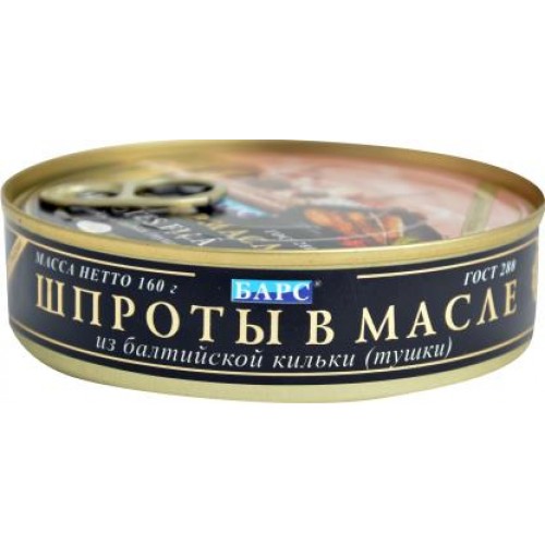 Шпроты БАРС из балтийской кильки в масле – это высококачественный продукт, весом 160 г. Приготовлены они по классическому рецепту с использованием только натуральных ингредиентов. Сначала килька коптится, а потом консервируется в масле с добавлением лишь соли для сохранения превосходного вкуса.