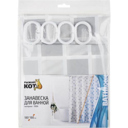 Штора для ванной РЫЖИЙ КОТ Peva 180х180см Арт. 008351 в магазинах Лента