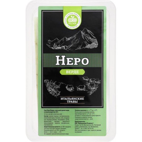 Сыр ECO VILLAGE Неро верде с базиликом и травами 45%, без змж, 180г в магазинах Лента