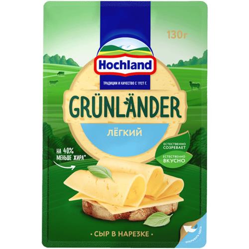 Сыр Hochland Грюнландер Легкий полутвердый нарезка 35%, 130г в магазинах Перекресток
