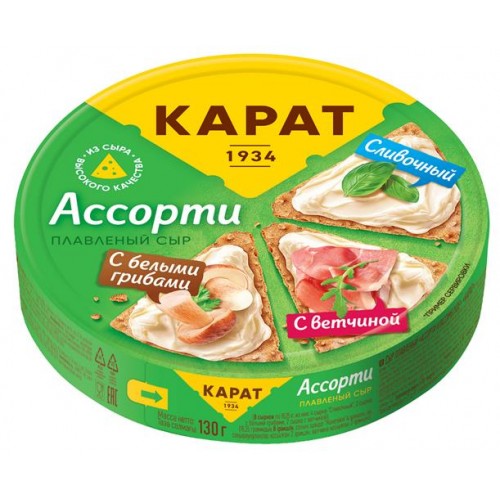 Сыр Карат плавленный ассорти 25% круг, 130г в магазинах Фасоль
