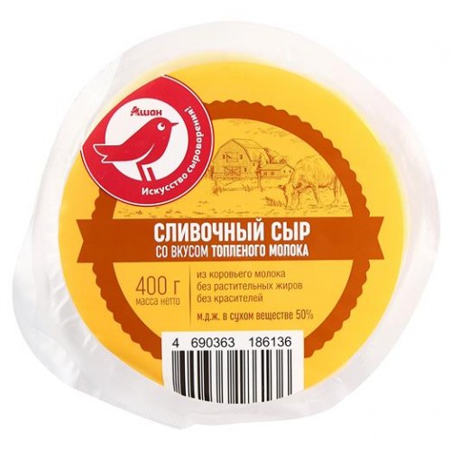 Сыр мягкий АШАН Красная птица Сливочный топленое молоко 50% БЗМЖ, 400 г (kastd) в магазинах Ашан