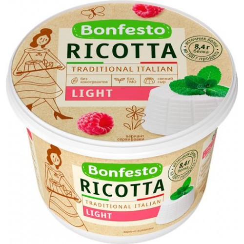 Сыр мягкий BONFESTO Рикотта 40%, без змж, 500г в магазинах Лента