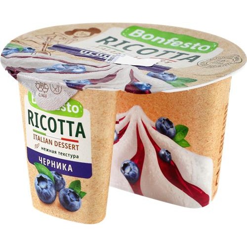 Сыр мягкий BONFESTO Рикотта с наполнителем черника 50%, без змж, 125г в магазинах Лента