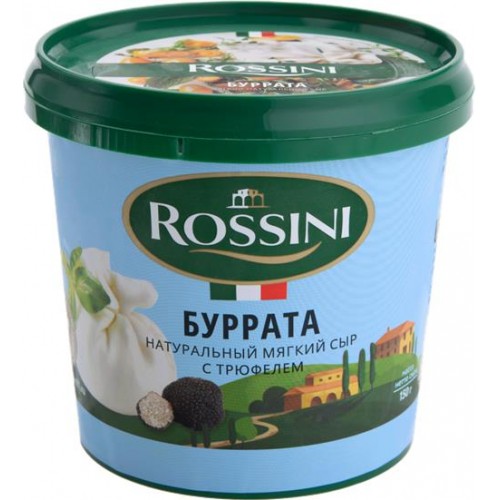 Сыр мягкий РОССИНИ Классическая Буррата Классическая с трюфелем 50%, без змж, 150г в магазинах Лента