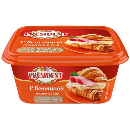 Сыр плавленый President Сливочный с ветчиной 45%, 400г в магазинах Перекресток