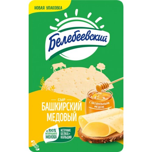 Сыр полутвердый БЕЛЕБЕЕВСКИЙ Башкирский Медовый 50%, нарезка, без змж, 140г в магазинах Лента