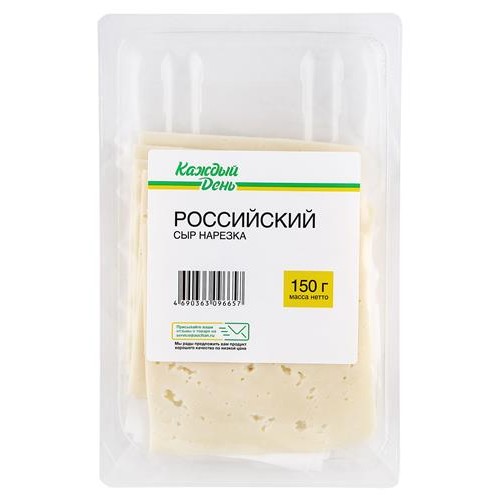 Сыр полутвердый Каждый День Российский нарезка 45% БЗМЖ, 150 г (kastd) в магазинах Ашан