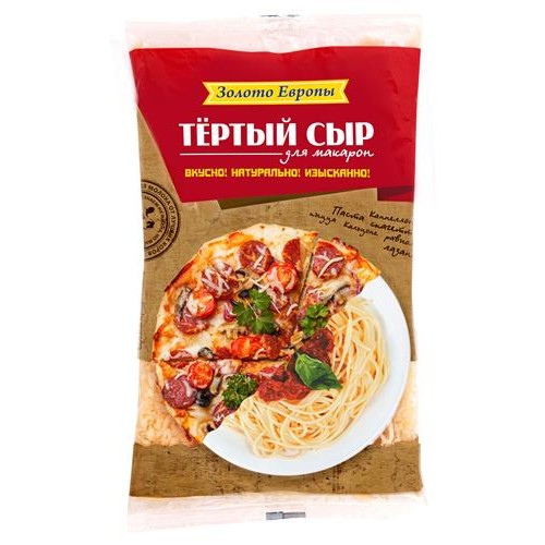 Сыр полутвердый Золото Европы Для макарон тертый БЗМЖ, 300 г (kastd) в магазинах Ашан