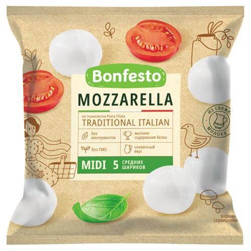 Сыр рассольный Bonfesto Моцарелла 45% 5 шариков БЗМЖ, 125 г (kastd) в магазинах Ашан