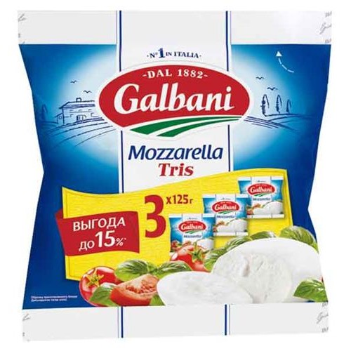 Сыр рассольный Galbani Моцарелла Трио 45% БЗМЖ, 375 г (kastd) в магазинах Ашан