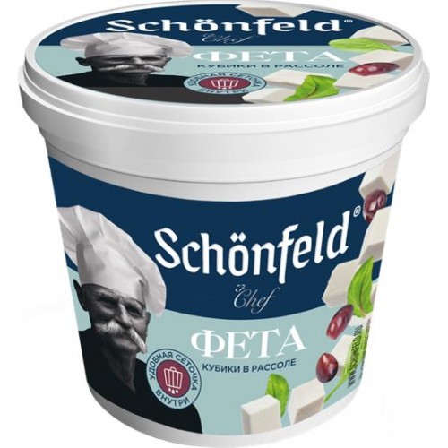 Сыр SCHONFELD Фета 45%, без змж, вес сыра 150г, вес с рассолом 350г в магазинах Лента