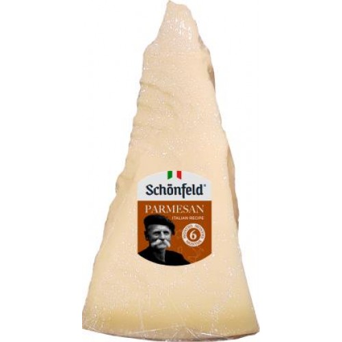 Сыр Schonfeld Пармезан, созревавший 6 месяцев, с содержанием жира 45-50%, представлен в виде куска массой 500 г. Изготовлен из коровьего молока с использованием традиционных рецептов сыроварения, что придает ему изысканный и насыщенный вкус.