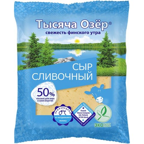 Сыр ТЫСЯЧА ОЗЕР Сливочный 50%, без змж, 200г в магазинах Лента