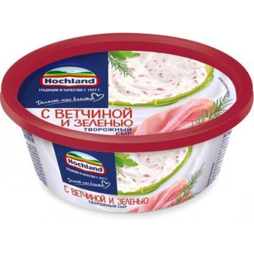 Сыр творожный Hochland с ветчиной и зеленью 60% 140г в магазинах Магнит