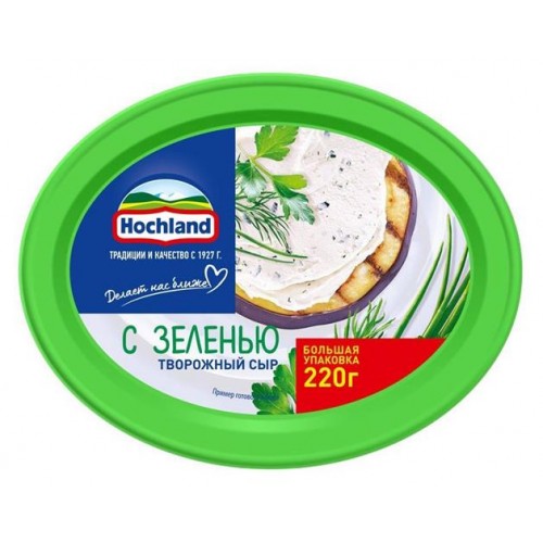 Сыр творожный Hochland с зеленью 60% БЗМЖ, 220 г (kastd) в магазинах Ашан