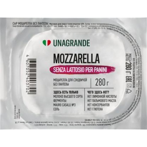 Сыр Unagrande Моцарелла без лактозы для сэндвичей 45% 280г в магазинах Магнит