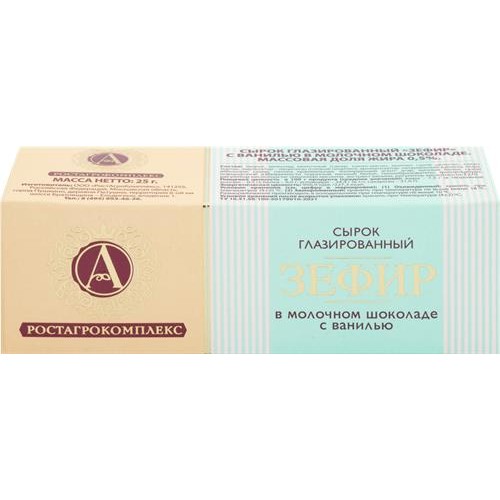 Сырок глазированный А.РОСТАГРОКОМПЛЕКС Зефир с ванилью в молочном шоколаде 0,5%, без змж, 25г в магазинах Лента