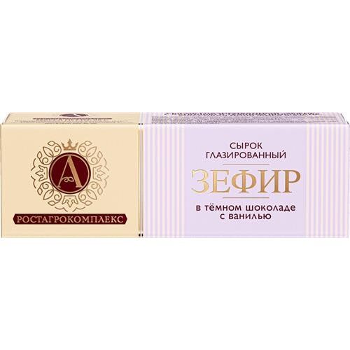 Сырок глазированный А.РОСТАГРОКОМПЛЕКС Зефир с ванилью в темном шоколаде 0,5%, без змж, 25г в магазинах Лента