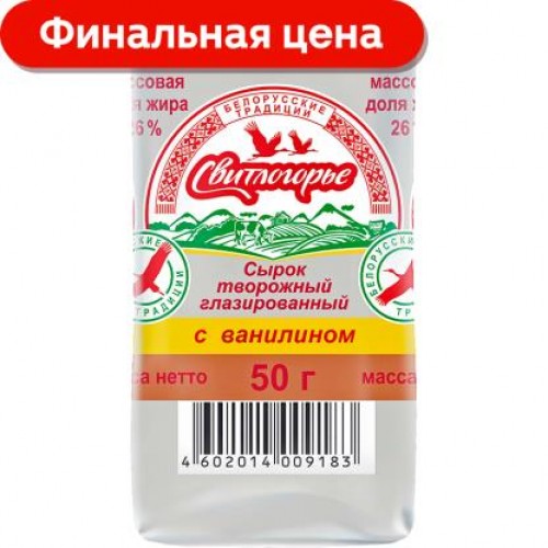 Сырок глазированный Свитлогорье с ванилином 26% 50г в магазинах Магнит