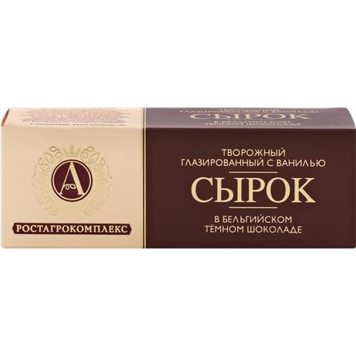 Сырок творожный глазированный А.РОСТАГРОКОМПЛЕКС с ванилью в темном шоколаде 26%, без змж, 50г в магазинах Лента